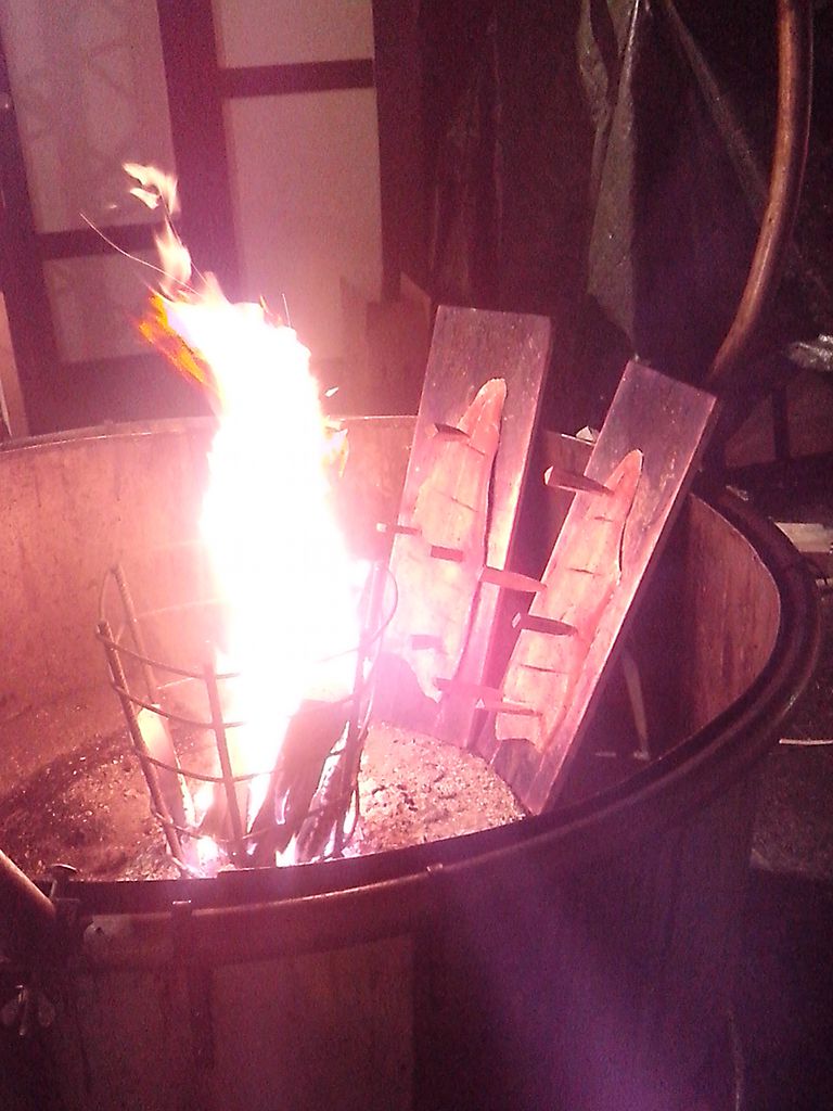 Der Geruch von Holzfeuer, in dem der Lachs gräuchert wird.