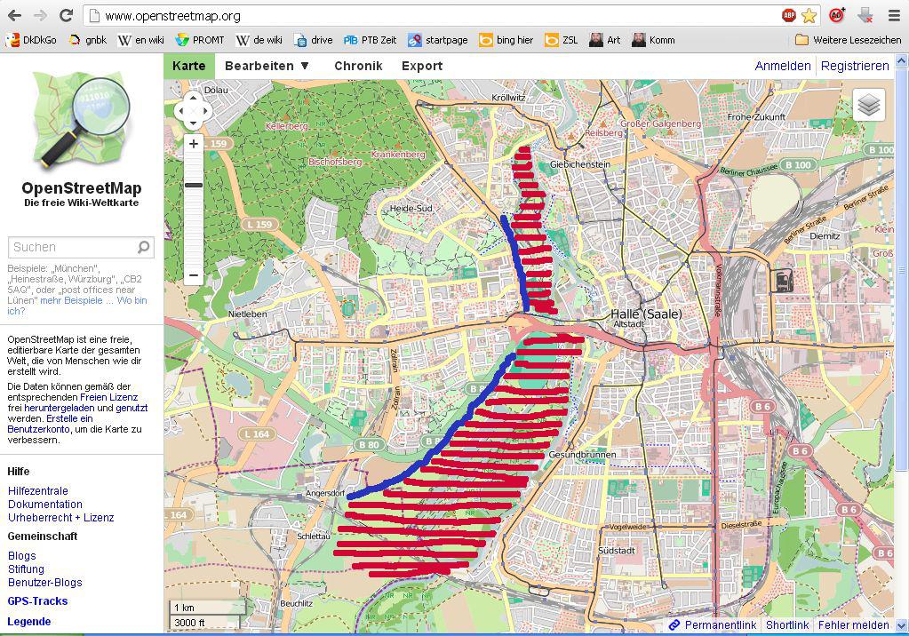 Die Überflutungsfläche wird “unten in der Karte” wahrscheinlich noch weiter gehen. Auch die Ausdehnung nördlich der Magistrale/Hochstraße (“oben in der Karte”) ist nicht vollständig und korrekt. (Screenshot der Karte von OSM.ORG)